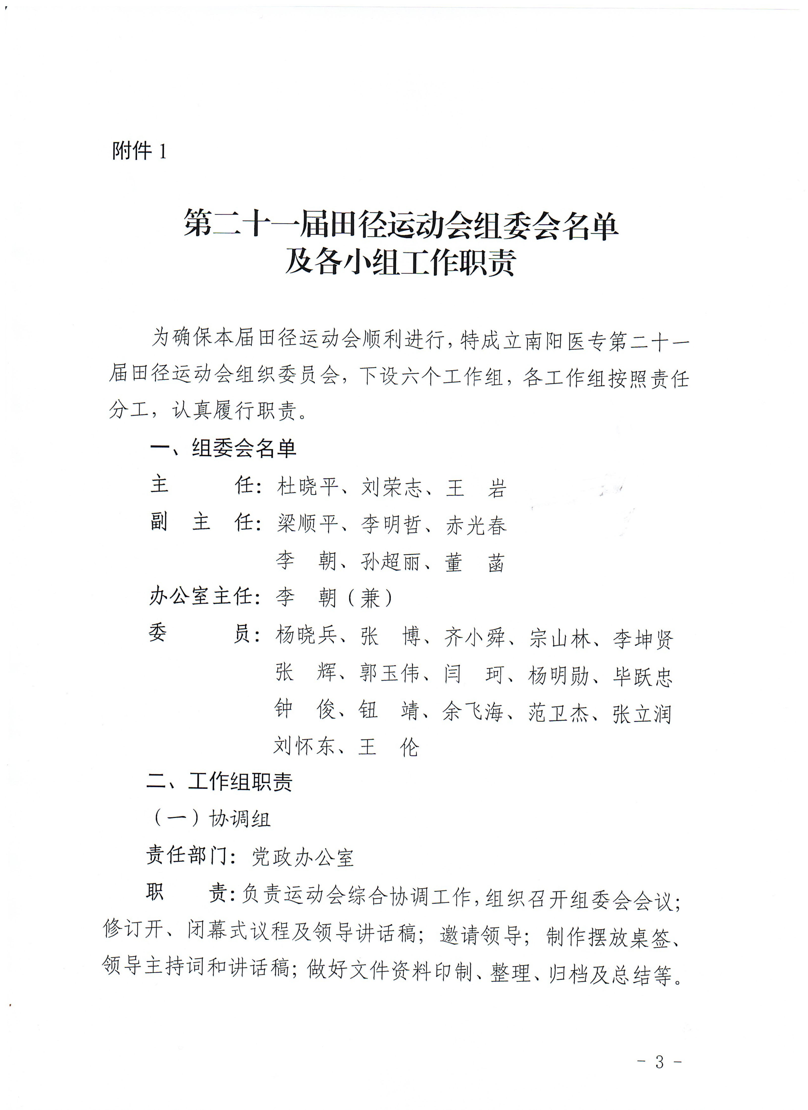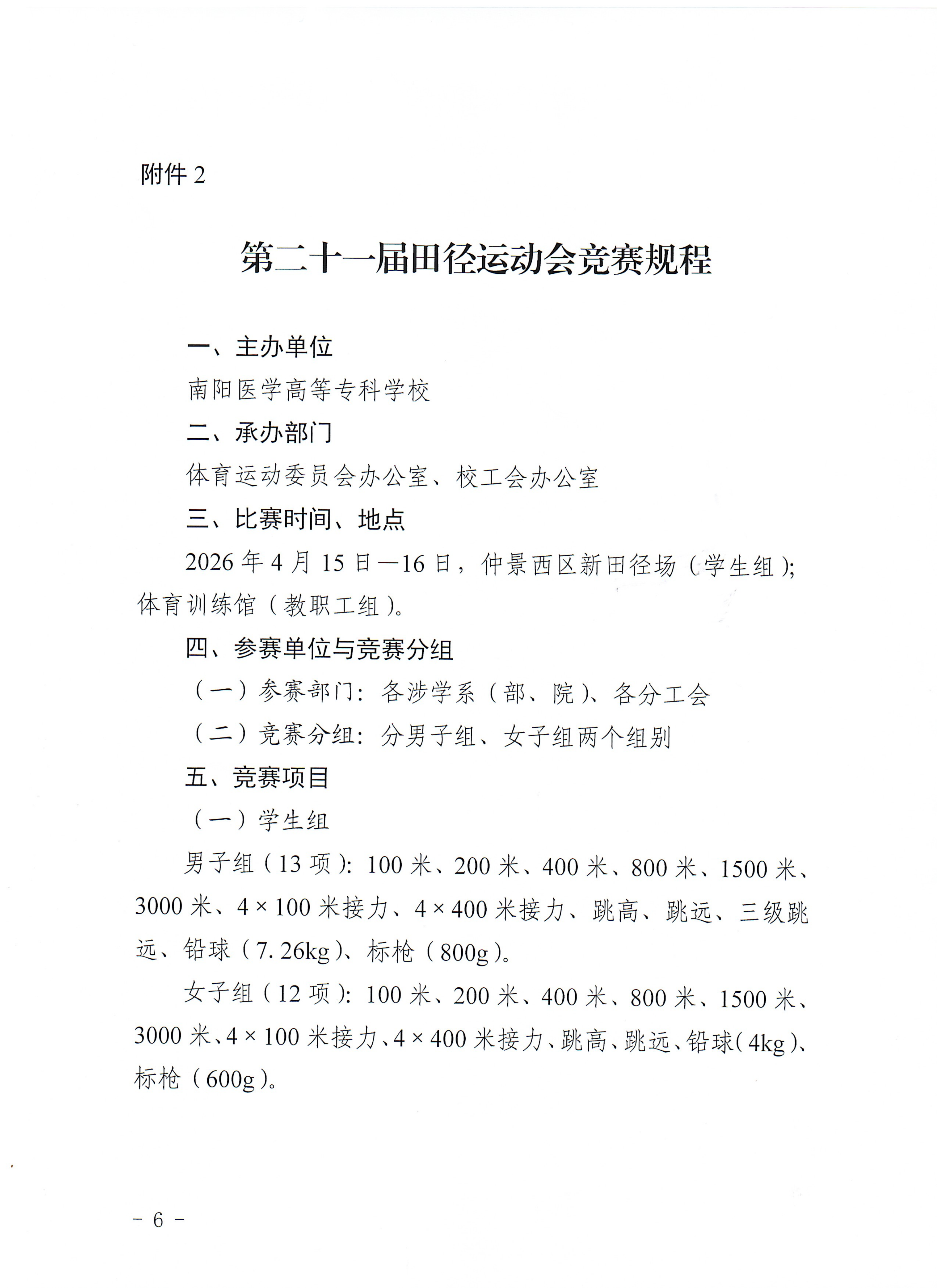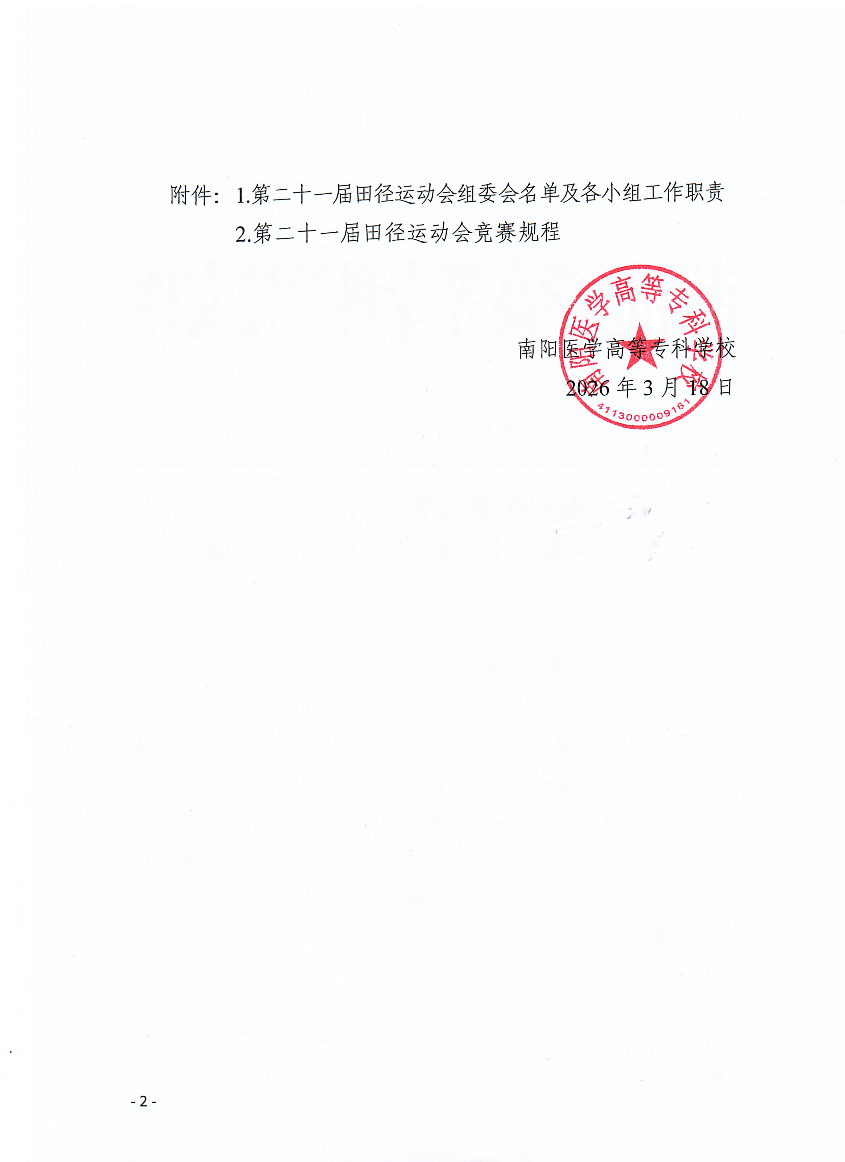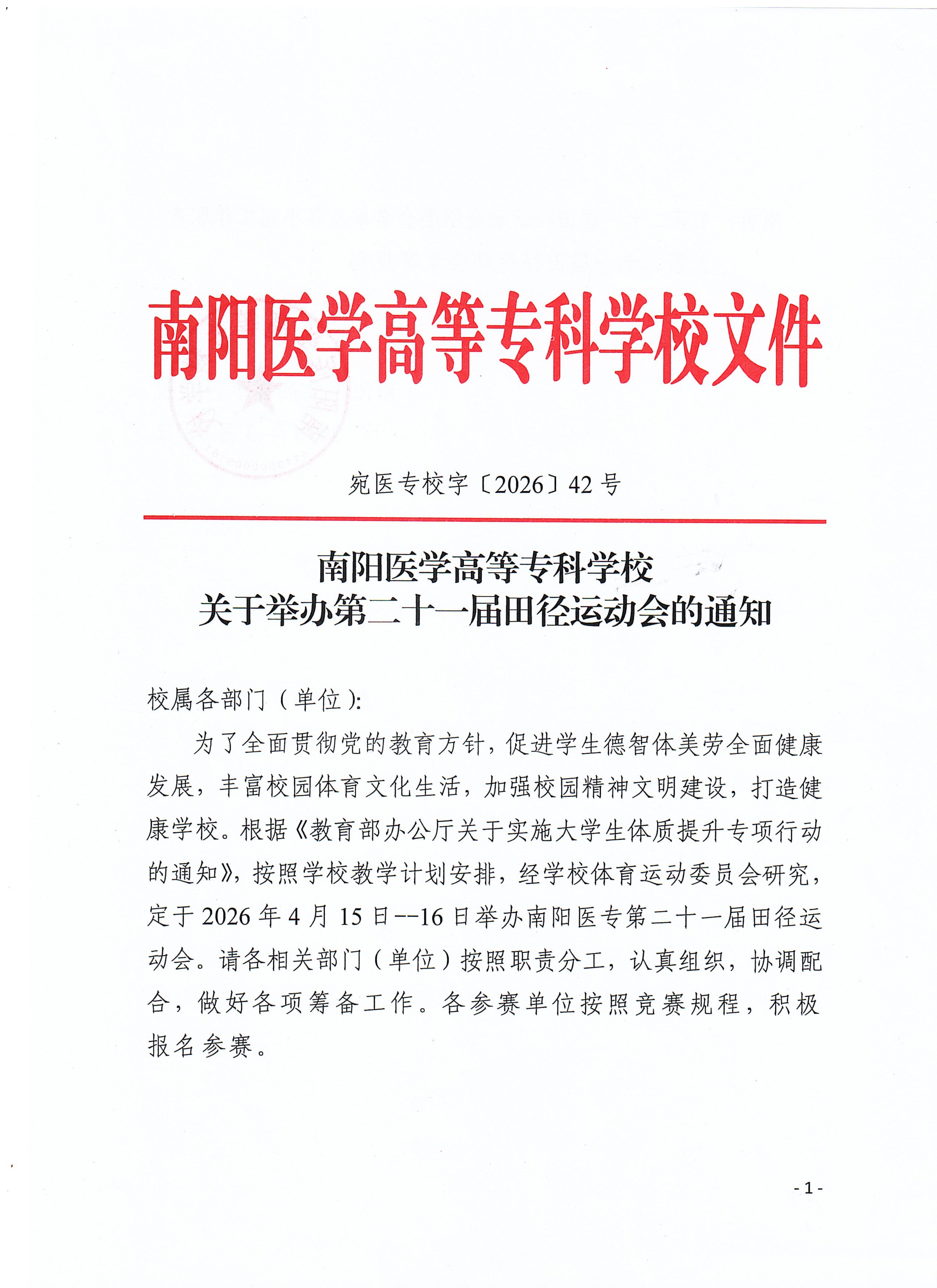 南阳医学高等专科学校关于举办第二十一届田径运动会的通知