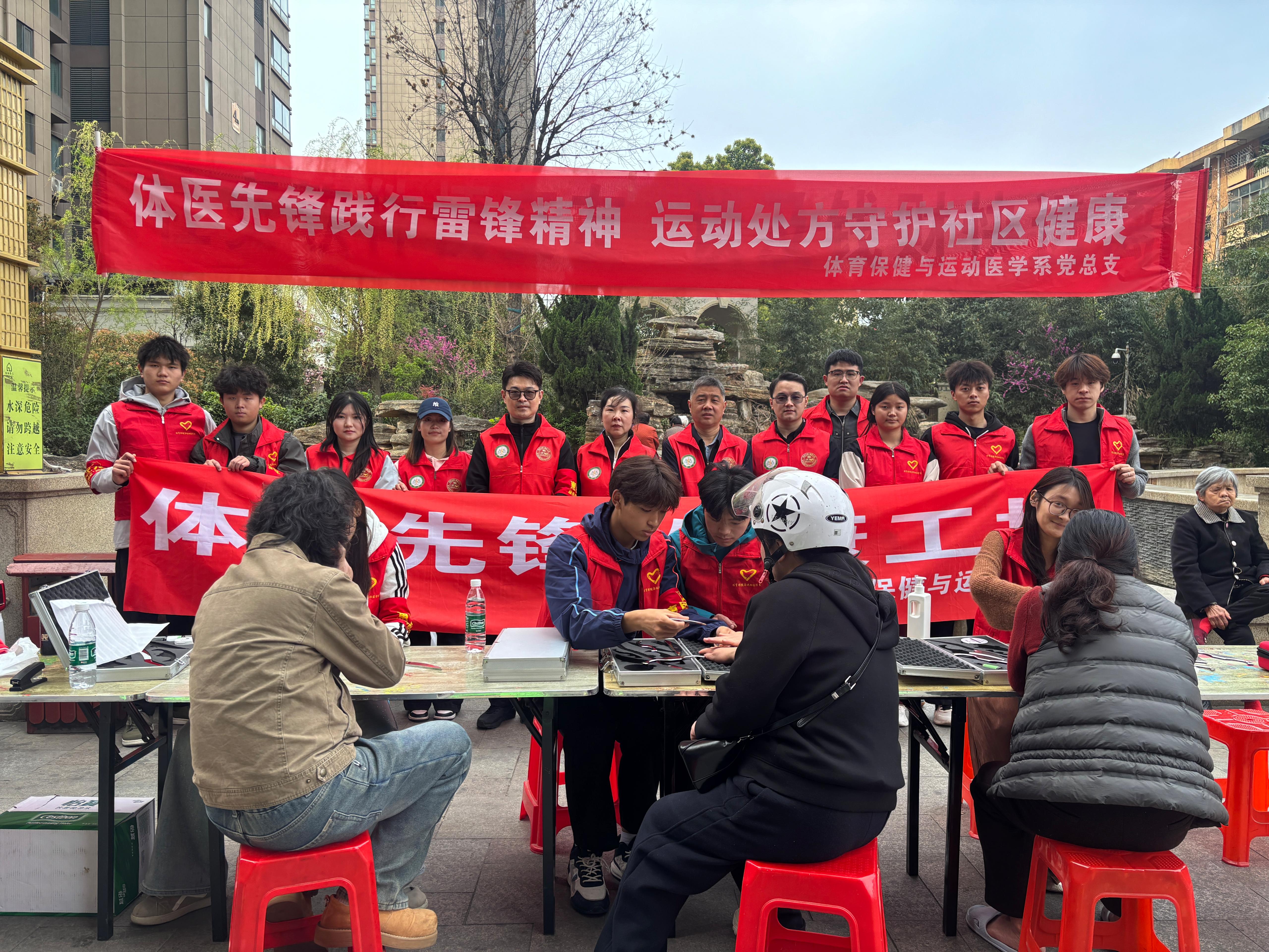 为深入践行雷锋精神,推动“体医融合”理念落地基层,3月28日上午,体育保健与运动医学系党总支组织党员志愿者走进武侯街道冠华名门国际社区,开展“体医先锋践行雷锋精神 运动处方守护社区健康”主题党日活动,为社区居民送上专业健康服务。