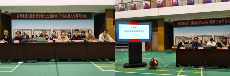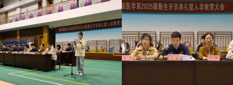 金秋送爽,丹桂飘香,9月26日晚18时30分,体育保健与运动医学系2025级新生开学典礼暨入学教育大会在体育馆隆重举行。大会有系党总支书记张端,党总支副书记、主任李朝,党总支副书记习茵,系副科级以上领导干部,系辅导员、班主任,以及2025级全体新生共同参加。会议由副书记习茵主持。