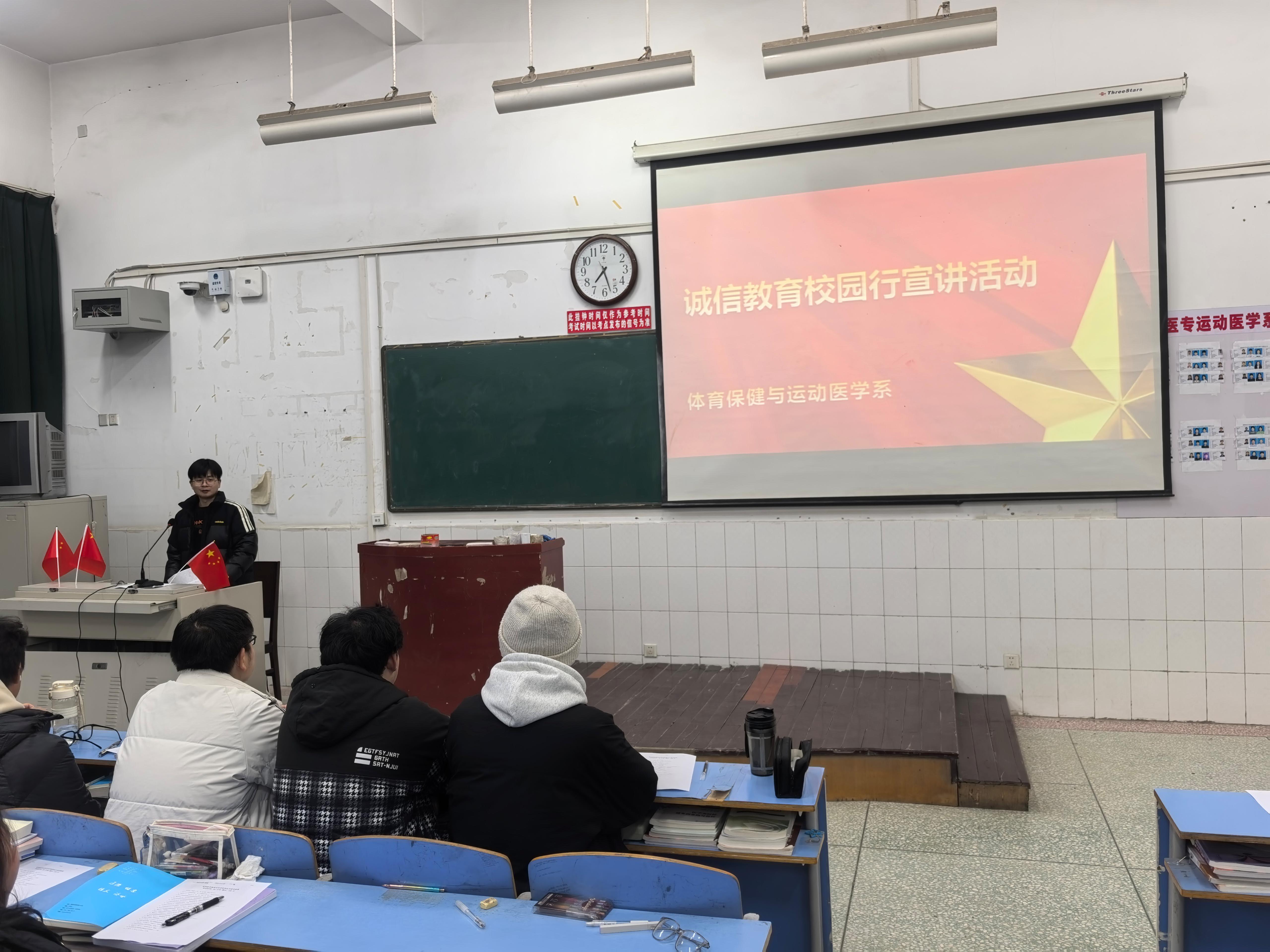 为深入培育和践行社会主义核心价值观,强化学生诚信意识,引导学子树立 “诚信做人、诚信求学、诚信立身” 的价值理念,结合学生资助政策落实中的诚信要求,近日,体育保健与运动医学系面向全体学生开展 “诚信教育校园行” 主题宣讲活动。活动由各班主任主讲,覆盖各年级学生代表及家庭经济困难学生群体。